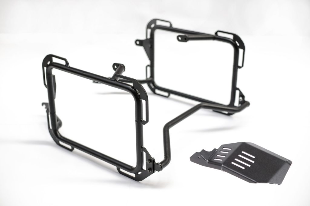 Exhaust heat shield is included! See the list of tested soft panniers below.