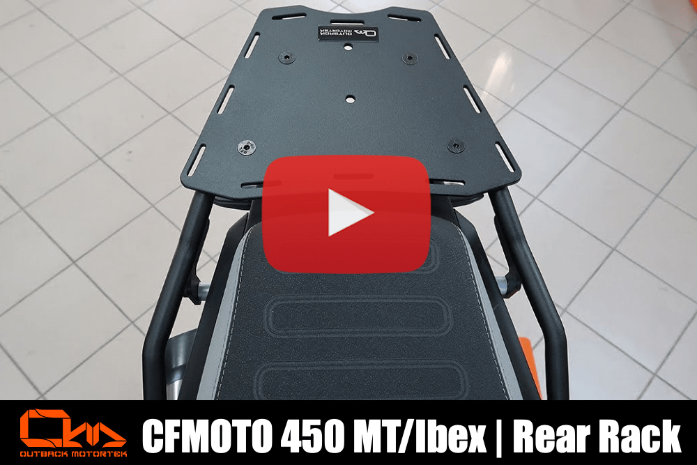 Outback Motortek designed a Rear Rack Combo (with support bars) for the CFMoto 450MT that isn’t only great looking, but is very functional as well. We’ve added holes that are large enough for technically any tie down straps or bungee cord, to help you secure a bag, tent, etc. on it.