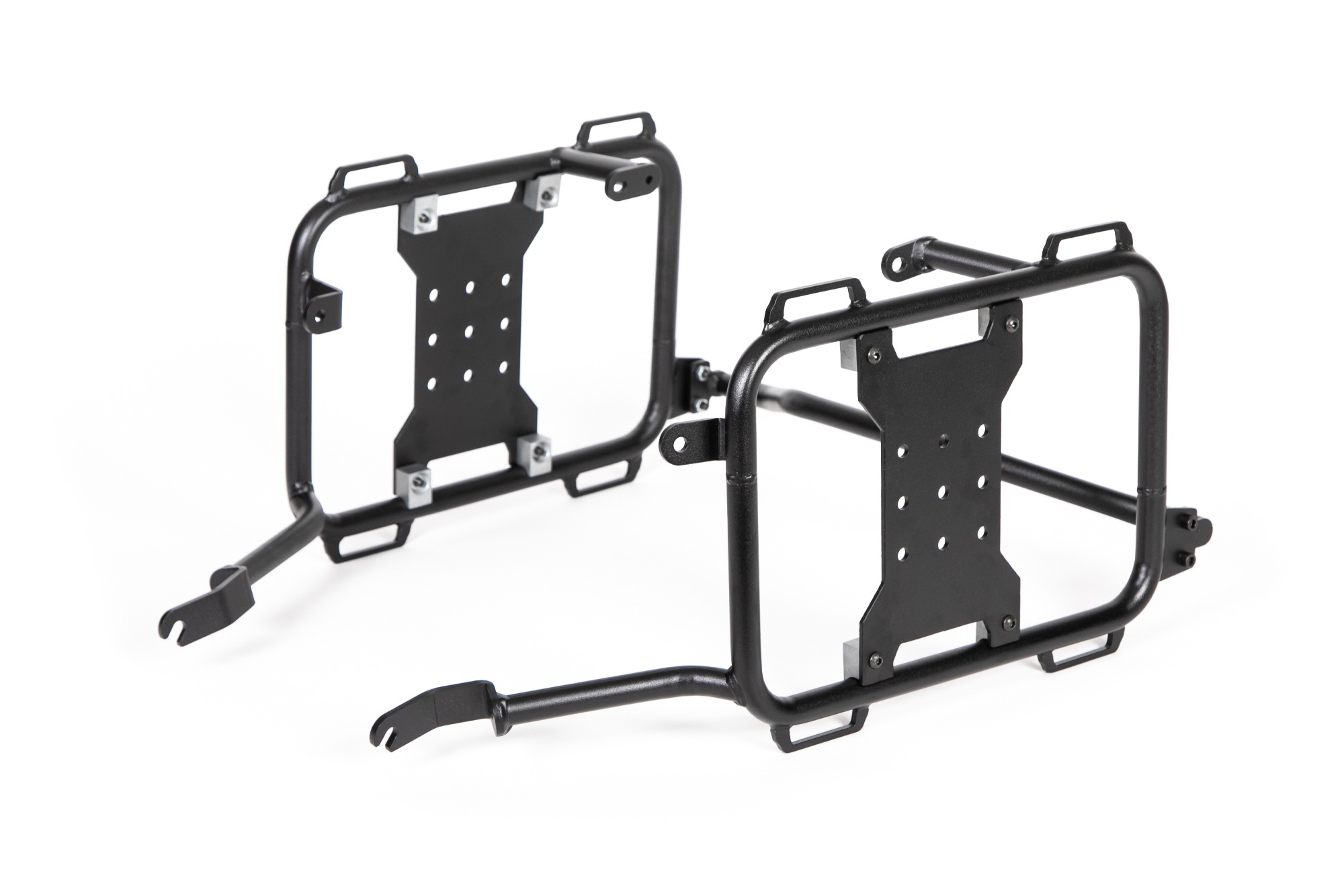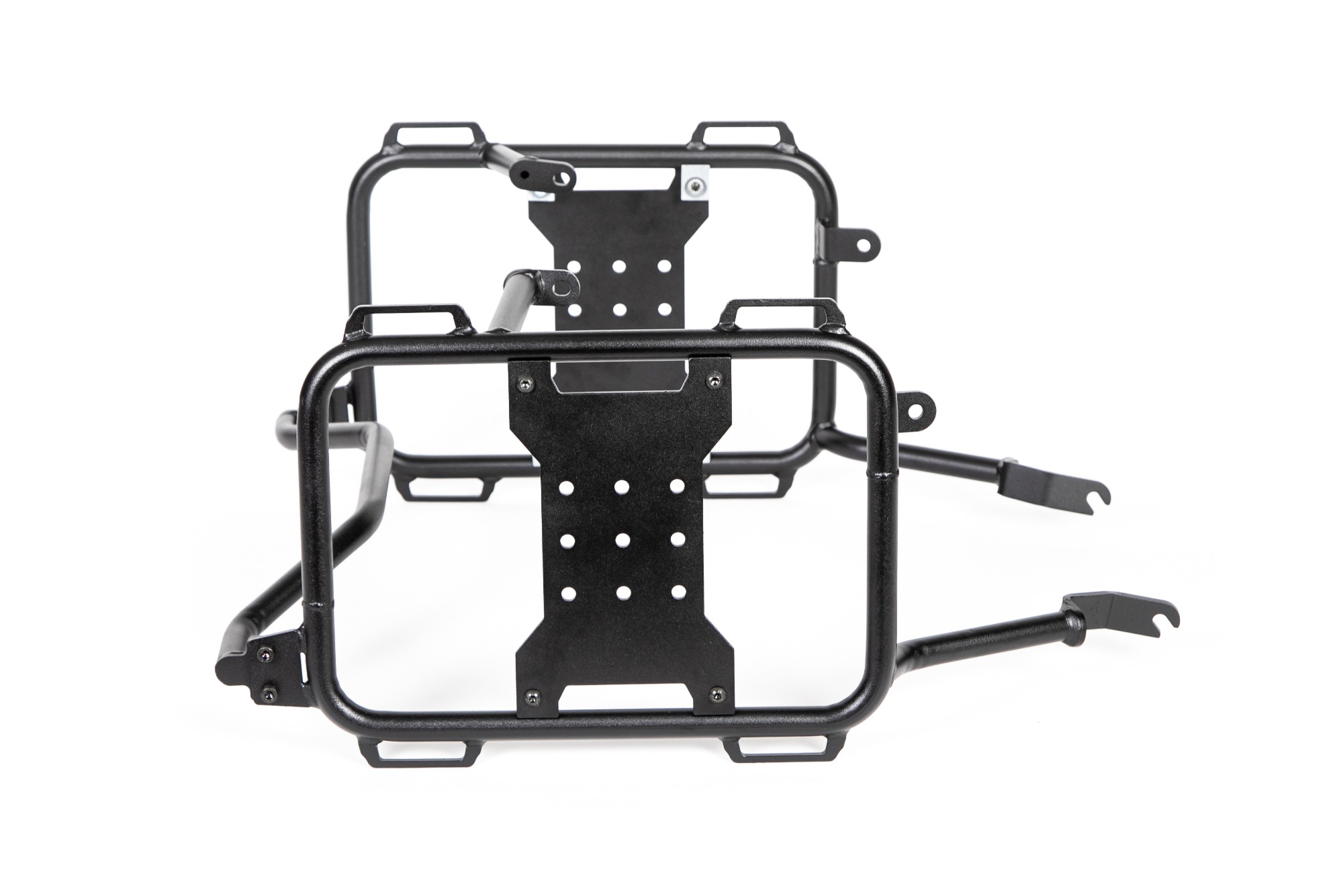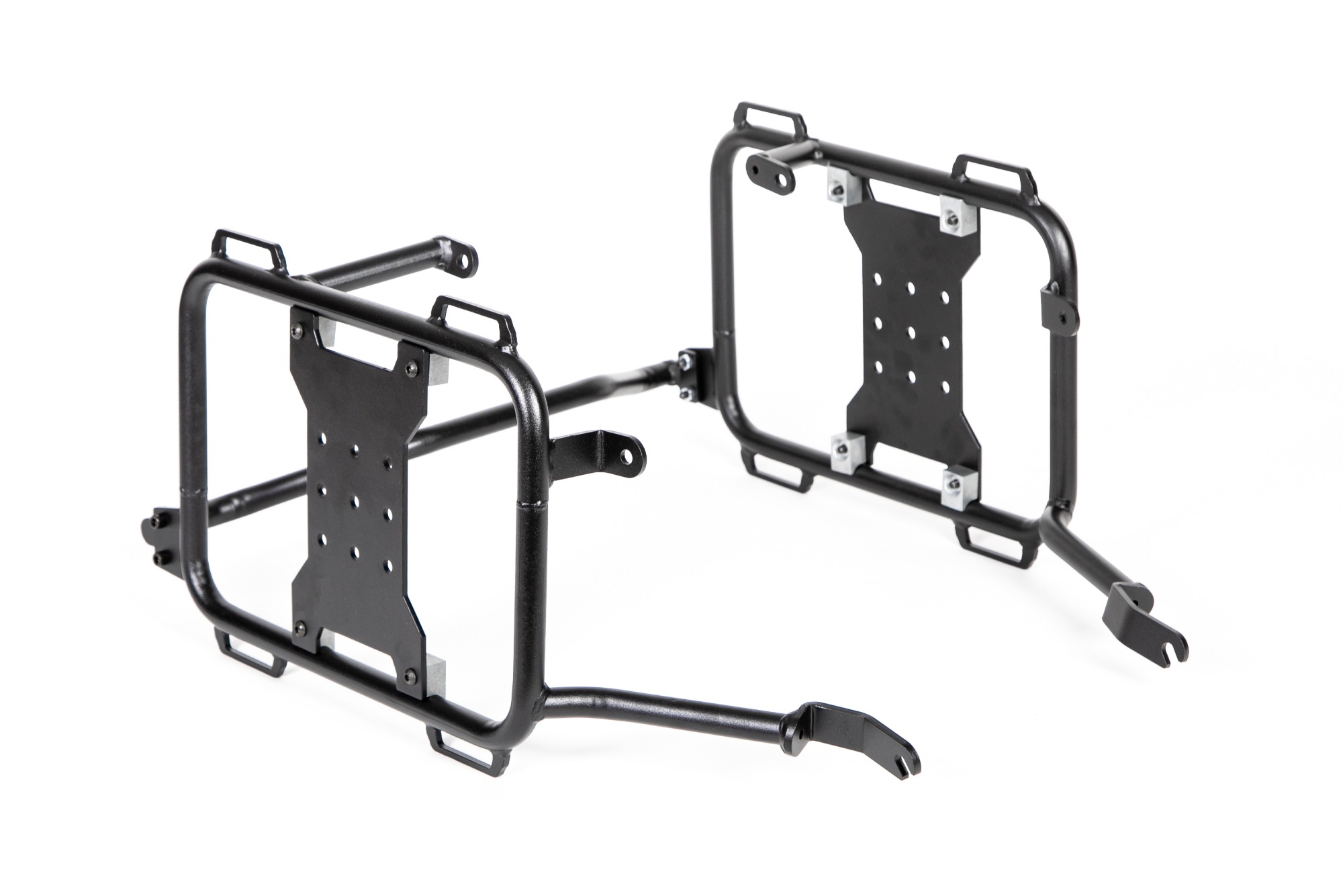 Designed and manufactured by Outback Motortek. The new X-Frames are the most universal and functional side pannier frames yet, allowing simple, secure mounting of hard panniers and soft luggage.