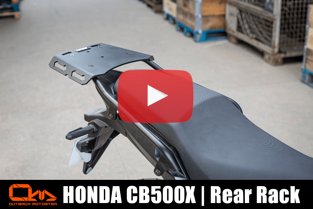 Outback Motortek designed a rear luggage rack for the Honda CB500X that is very functional. We’ve added holes that are large enough for technically any tie down straps or bungee cord to help you secure a bag, tent etc. on it.