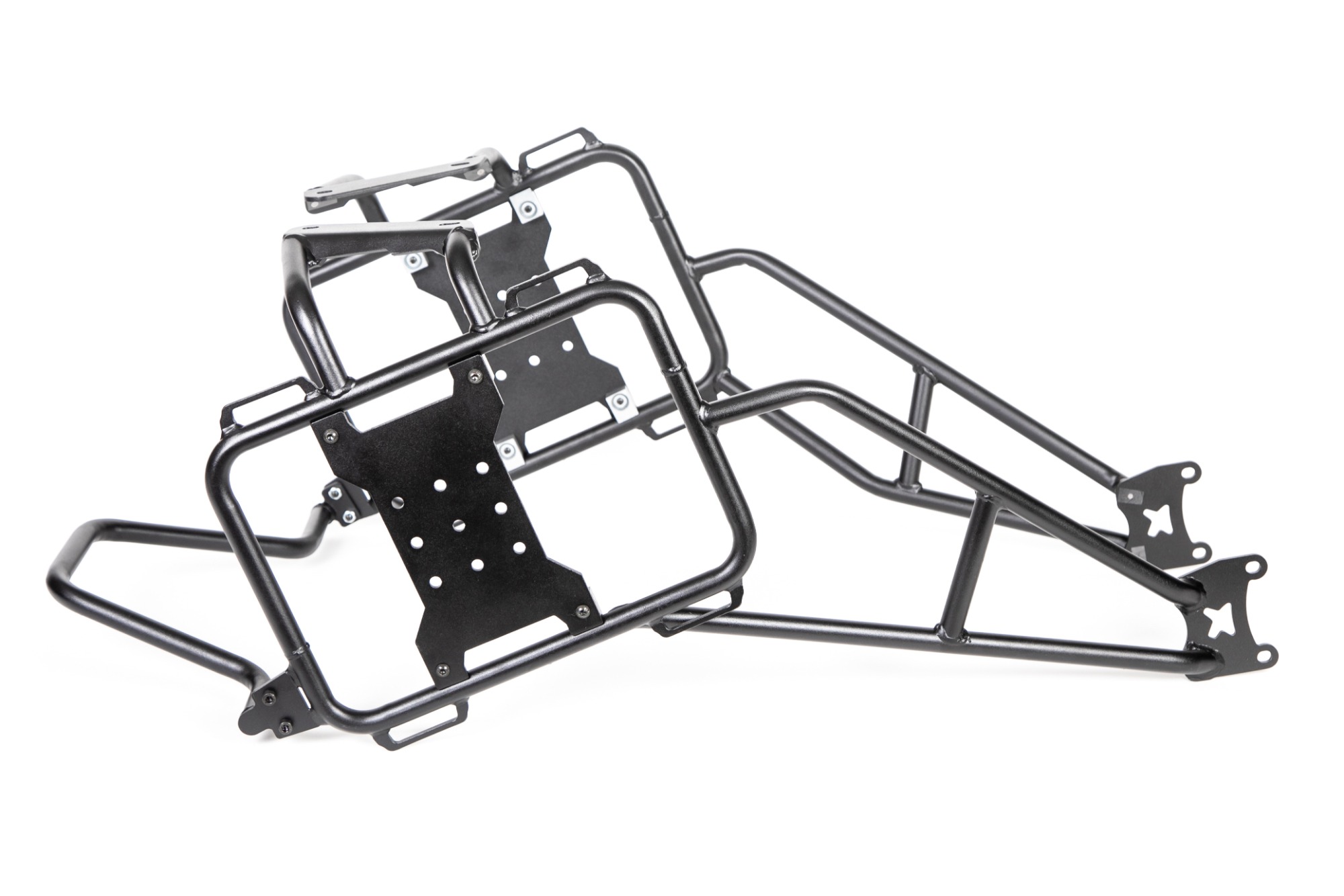 The new X-Frames are the most universal and functional side pannier frames yet, allowing simple, secure mounting of Rotopax, hard panniers and soft luggage.